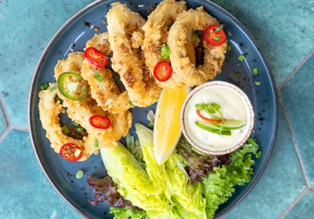Krążki z kalmarów w tempurze z limonkowym mayo