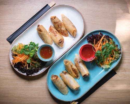 Warzywa, grzyby mun, makaron sojowy, marchewka, kapusta, sos Sweet Chilli. Możliwość zamówienia ze sztućcami.