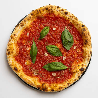 sos z pomidorów San Marzano DOP, świeży czosnek, oliwa extra vergine, oregano, liście bazylii