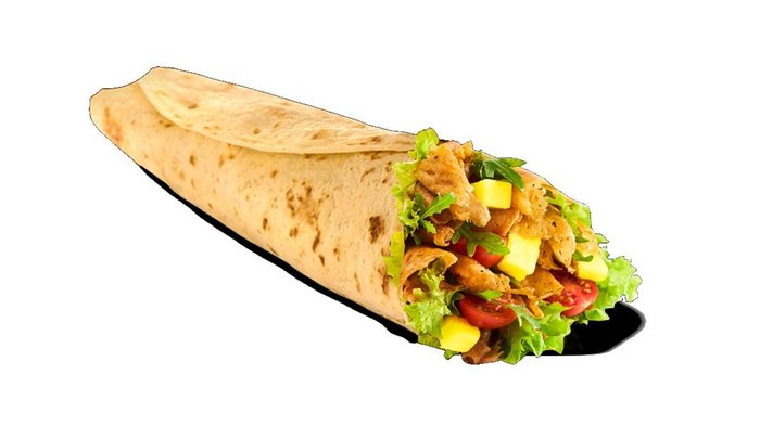 Z mięsem 150g, warzywami 103g i plackiem 72g + ananas