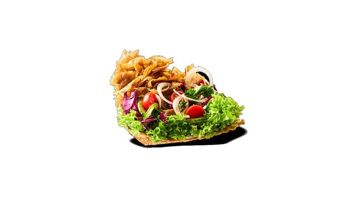 Z mięsem 150g oraz 2 sosami z listy do wyboru, warzywami 120g i bułką 110g