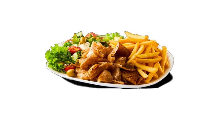 Mięso 150g oraz 2 sosy z listy do wyboru, warzywa 150g i frytki lub ryż 150g